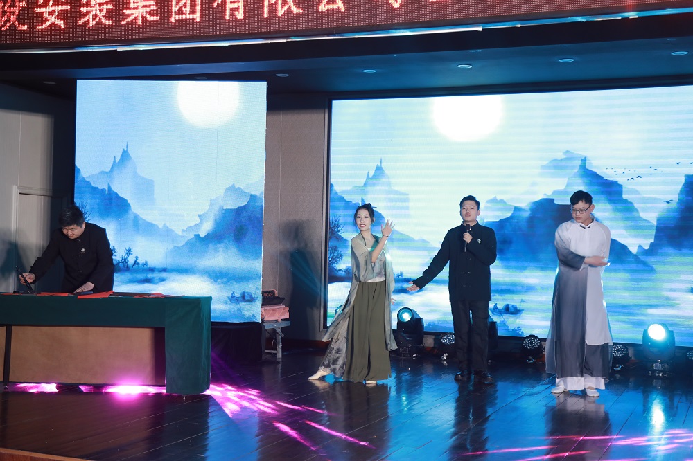 聯(lián)歡會一個個精彩的節(jié)目,博得大家的聲聲喝彩和陣陣掌聲,氣氛熱烈。在開場舞《龍騰盛世譜華章》中,聯(lián)歡會拉開序幕。新能源分公司《向光而行》展現(xiàn)了對未來發(fā)展的美好向往;安慶分公司《共創(chuàng)平安幸福年》以黃梅大鼓的形式講述安全工作的重要性;蚌埠分公司《水調歌頭》以獨唱、舞蹈及書法的形式送上祝福;公司機關的獨唱歌曲串燒《音樂學堂》帶領大家回憶童年耳熟能詳?shù)母枨?;新疆烏蘇分公司的小伙子們帶來的舞蹈《麥西來甫》呈現(xiàn)了維吾爾族的民族風情;滁州分公司的詩朗誦《建工逐夢人奉獻譜“新篇”》講述了建工安裝人的辛勤與奉獻;合肥分公司的《滁州賦》為觀眾帶來優(yōu)美的國風視覺享受;電梯分公司《舞動青春》散發(fā)著青春的活力與激情。最后,在共唱《相親相愛》中聯(lián)歡會落下帷幕。