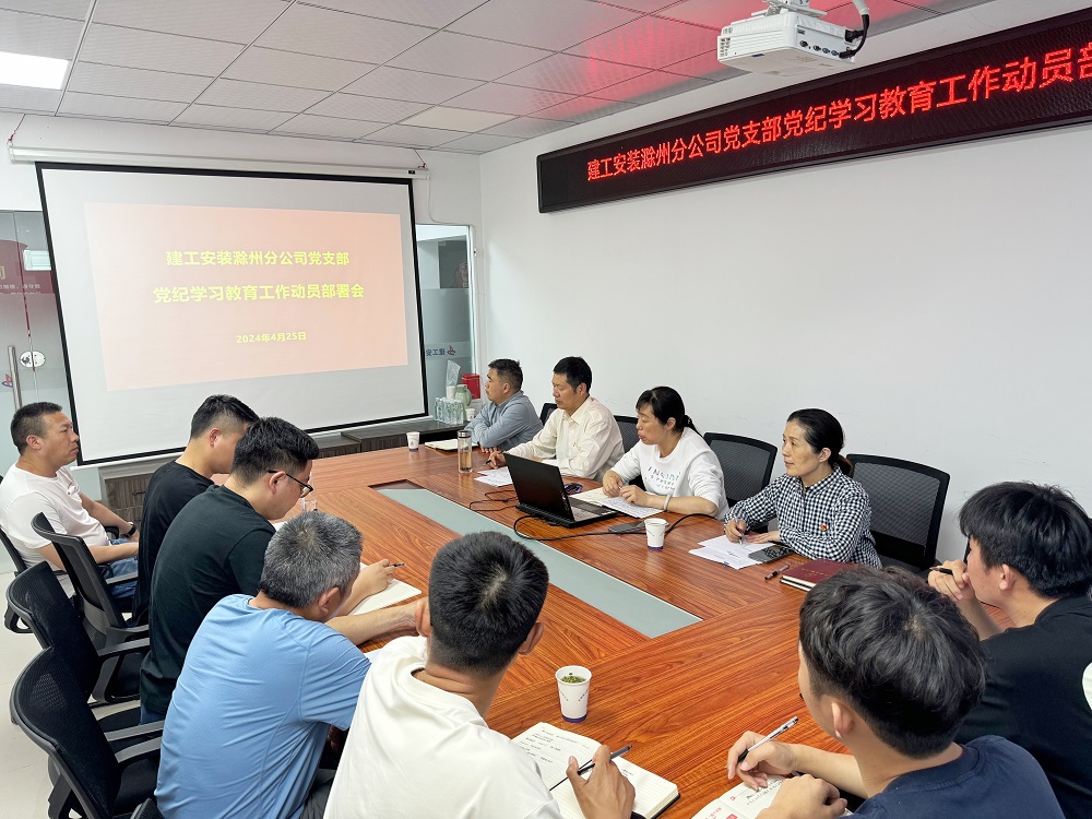4月25日下午,建工安裝滁州分公司黨支部召開黨紀學習教育動員部署會。學習貫徹習近平總書記關于全面加強黨的紀律建設的重要論述,傳達學習黨中央關于黨紀學習教育的決策部署和集團公司及公司黨委相關工作要求。分公司領導班子成員、全體黨員、部分機關部門負責人等參加會議。