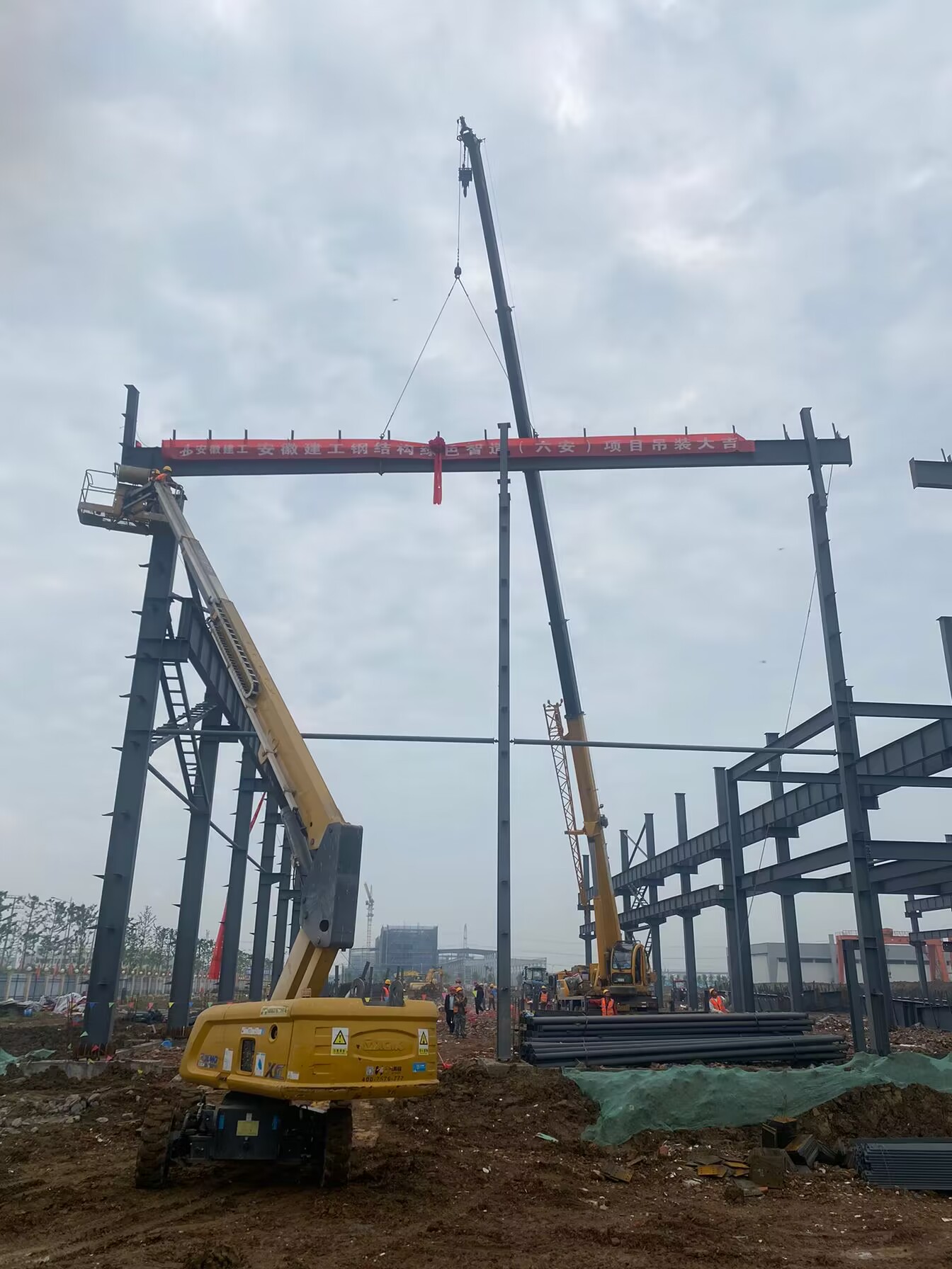 5月1日上午8點18分,建工安裝合肥分公司安徽建工鋼結(jié)構(gòu)綠色智造(六安)項目順利開始“大跨度屋面梁吊裝作業(yè)”。