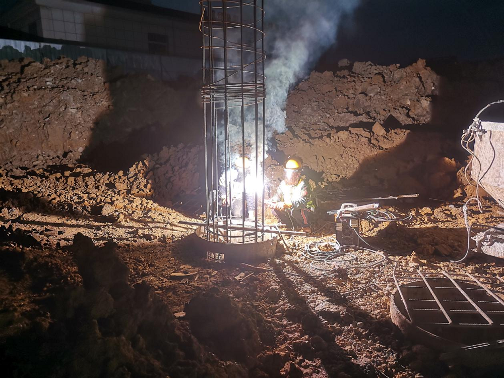 時(shí)間緊、任務(wù)重,為了全速推進(jìn)施工進(jìn)度,項(xiàng)目部堅(jiān)持每天召開“碰頭會(huì)”,解決當(dāng)天施工現(xiàn)場各種問題,不斷優(yōu)化施工組織方案,保障資源配置,把任務(wù)分解到天、具體到點(diǎn),明確責(zé)任人,采取增大工作面、增加施工班組人員和機(jī)械等有效措施加快施工進(jìn)度,加班加點(diǎn)施工,進(jìn)入連續(xù)作戰(zhàn)狀態(tài),奏響了“白+黑”不停歇的沖刺戰(zhàn)歌。目前,在項(xiàng)目部的連續(xù)奮戰(zhàn)和努力下,六鋼大廈酒店基礎(chǔ)部位旋挖灌注樁澆筑已完成,11-7軸/a-d軸開挖完成。正處于樁基承臺(tái)施工階段。