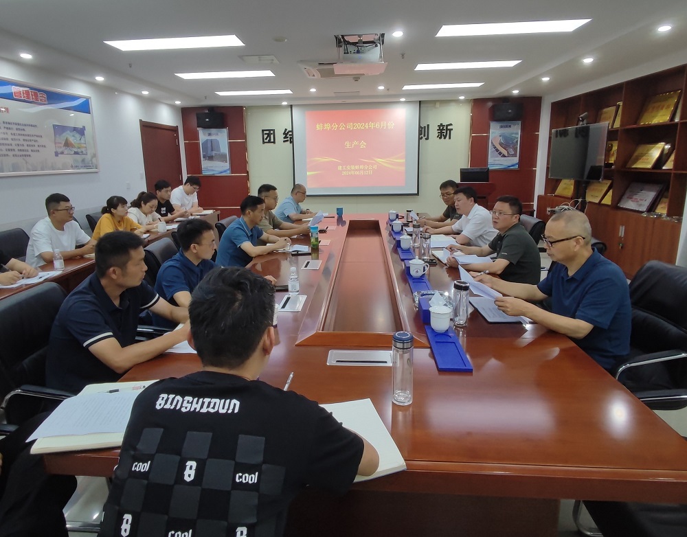 6月12日上午,蚌埠分公司組織召開6月份生產(chǎn)會,分公司領(lǐng)導(dǎo)班子、所屬各項目經(jīng)理、機關(guān)各部門負責(zé)人及工程管理部全體員工參加會議,會議由分公司副經(jīng)理張斌主持。