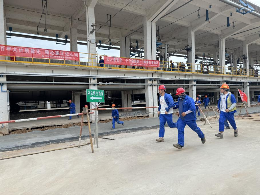 6月18日,為進(jìn)一步提高項(xiàng)目部全員安全防范意識(shí)和安全事故應(yīng)急能力,檢驗(yàn)應(yīng)急預(yù)案的可執(zhí)行性,使人員掌握應(yīng)急救援運(yùn)行程序和方法,提高應(yīng)急救援小組應(yīng)急處置和協(xié)調(diào)作戰(zhàn)的能力,分公司在鐵路卸苯項(xiàng)目上聯(lián)合萬(wàn)緯監(jiān)理單位開(kāi)展應(yīng)急逃生演練。