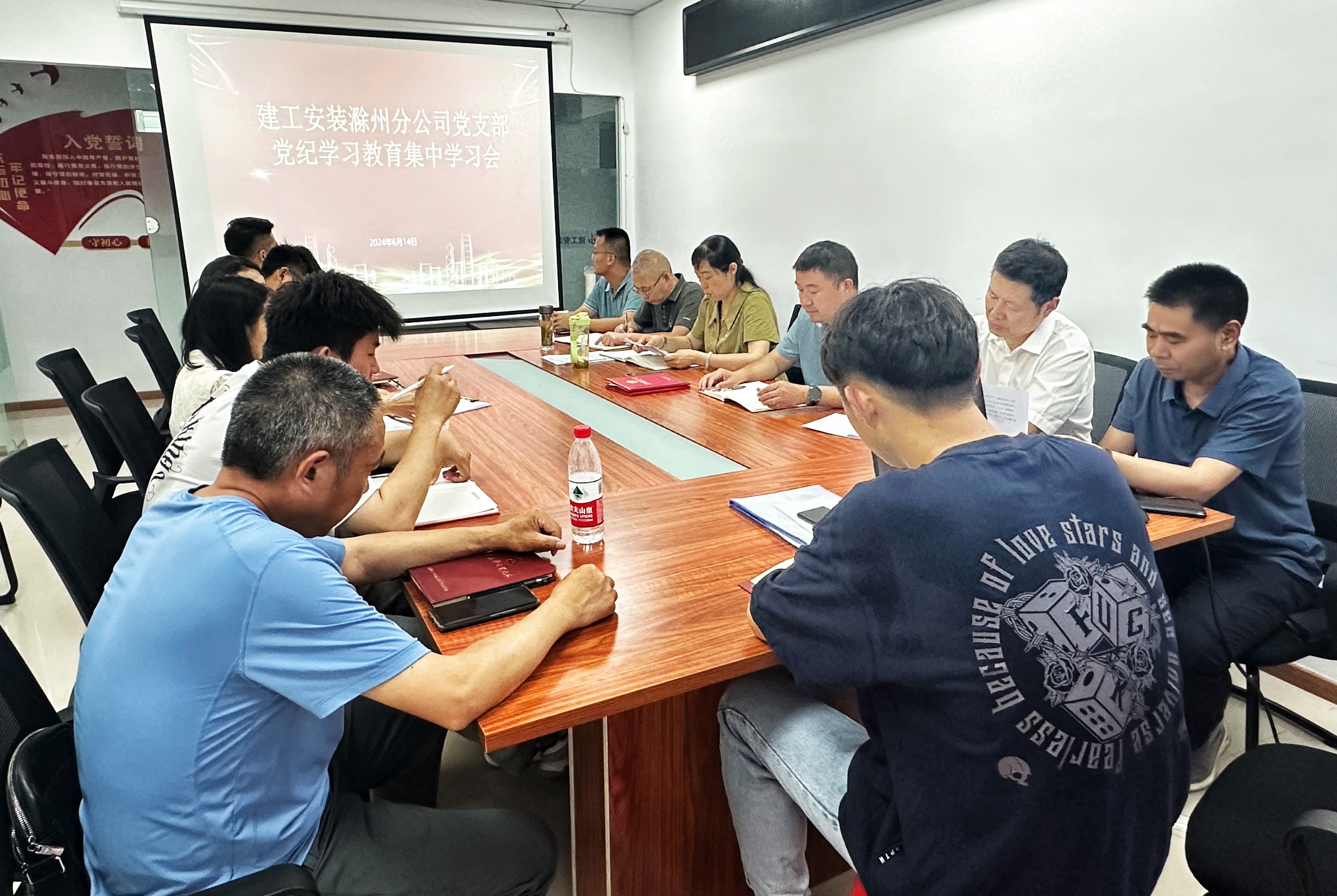 為推動分公司黨紀(jì)學(xué)習(xí)教育深入開展,進一步增強黨員干部職工紀(jì)律規(guī)矩意識,6月14日,建工安裝滁州分公司黨支部組織召開了黨紀(jì)學(xué)習(xí)教育集中學(xué)習(xí)推進會,會議由分公司黨支部書記、副經(jīng)理程茂麗主持。