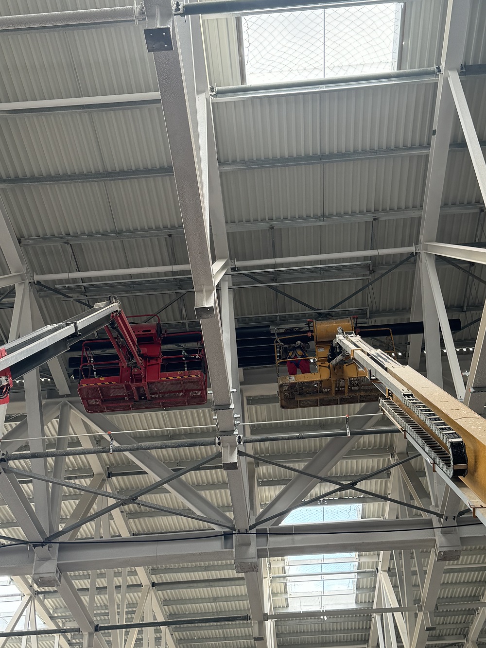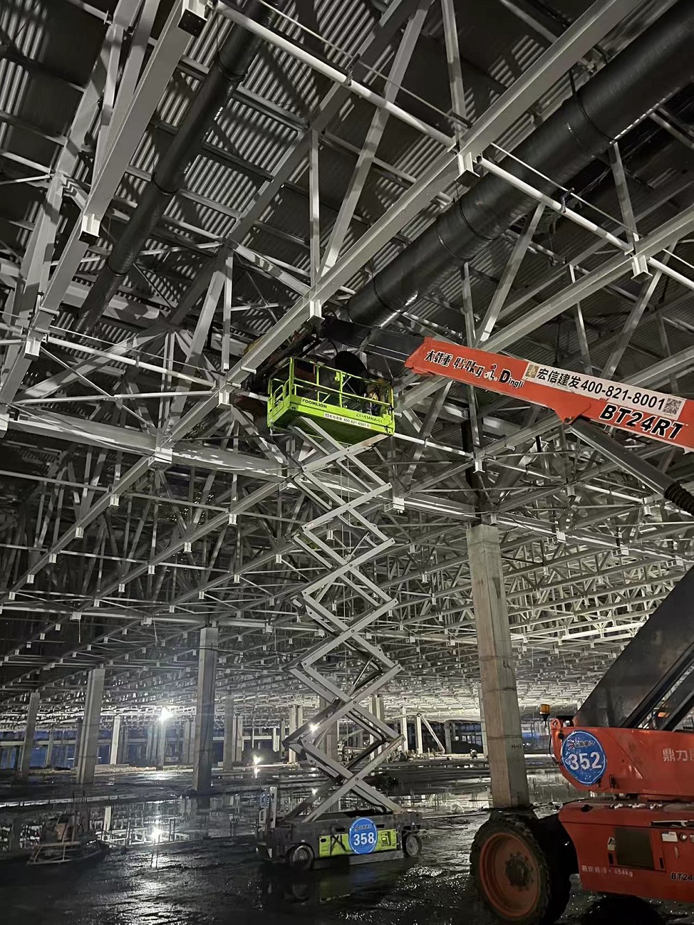 目前正在進(jìn)行車間一1-6區(qū)通風(fēng)管、照明管、橋架、虹吸雨水管、衛(wèi)生間排水管、防雷接地、消防管等安裝作業(yè),材料加工區(qū)預(yù)制各類管道支架也在同步推進(jìn)?,F(xiàn)已完成車間一風(fēng)管安裝約3000平方米,風(fēng)管預(yù)制約8000平方米,虹吸雨水管道安裝約120米,照明配管安裝約2000米,消防管道安裝約320米,防雷接地網(wǎng)安裝約10000米,橋架安裝約400米。