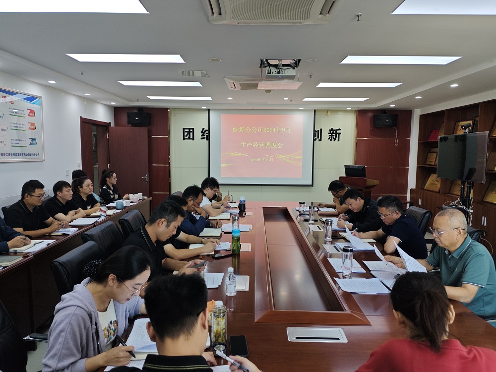 9月23日上午,蚌埠分公司組織召開9月份生產(chǎn)經(jīng)營調(diào)度會,分公司領(lǐng)導(dǎo)班子成員、所屬各項目部、機(jī)關(guān)各部門負(fù)責(zé)人及工程管理部全體員工參加會議,會議由分公司副經(jīng)理張斌主持。