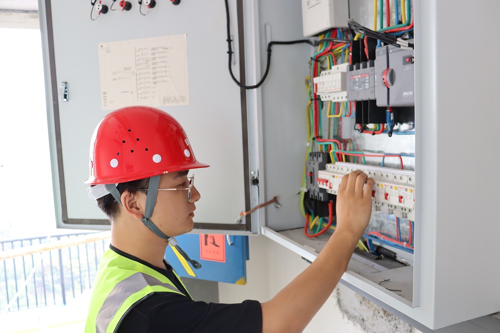 中國蚌埠傳感谷(寧波蚌埠微電子產(chǎn)業(yè)園)項(xiàng)目,技術(shù)員,鄭繼昊,正在檢查電梯控制柜操作系統(tǒng)。奮進(jìn)正當(dāng)時(shí),我為祖國建設(shè)出力,以實(shí)際行動(dòng)建設(shè)精品工程。我在項(xiàng)目堅(jiān)守,我為祖國慶生。