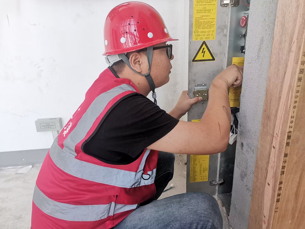 合肥市包河區(qū)衛(wèi)崗?fù)跣l(wèi)片區(qū)城市更新項(xiàng)目,技術(shù)員,朱潤龍,正在機(jī)房檢查配電箱各項(xiàng)開關(guān),奮斗路正長,行者方致遠(yuǎn),我在建工安裝持續(xù)秉持向陽而生的勁頭,為祖國繁榮昌盛和企業(yè)高質(zhì)量發(fā)展貢獻(xiàn)自己的力量。我在項(xiàng)目堅(jiān)守,我為祖國慶生。
