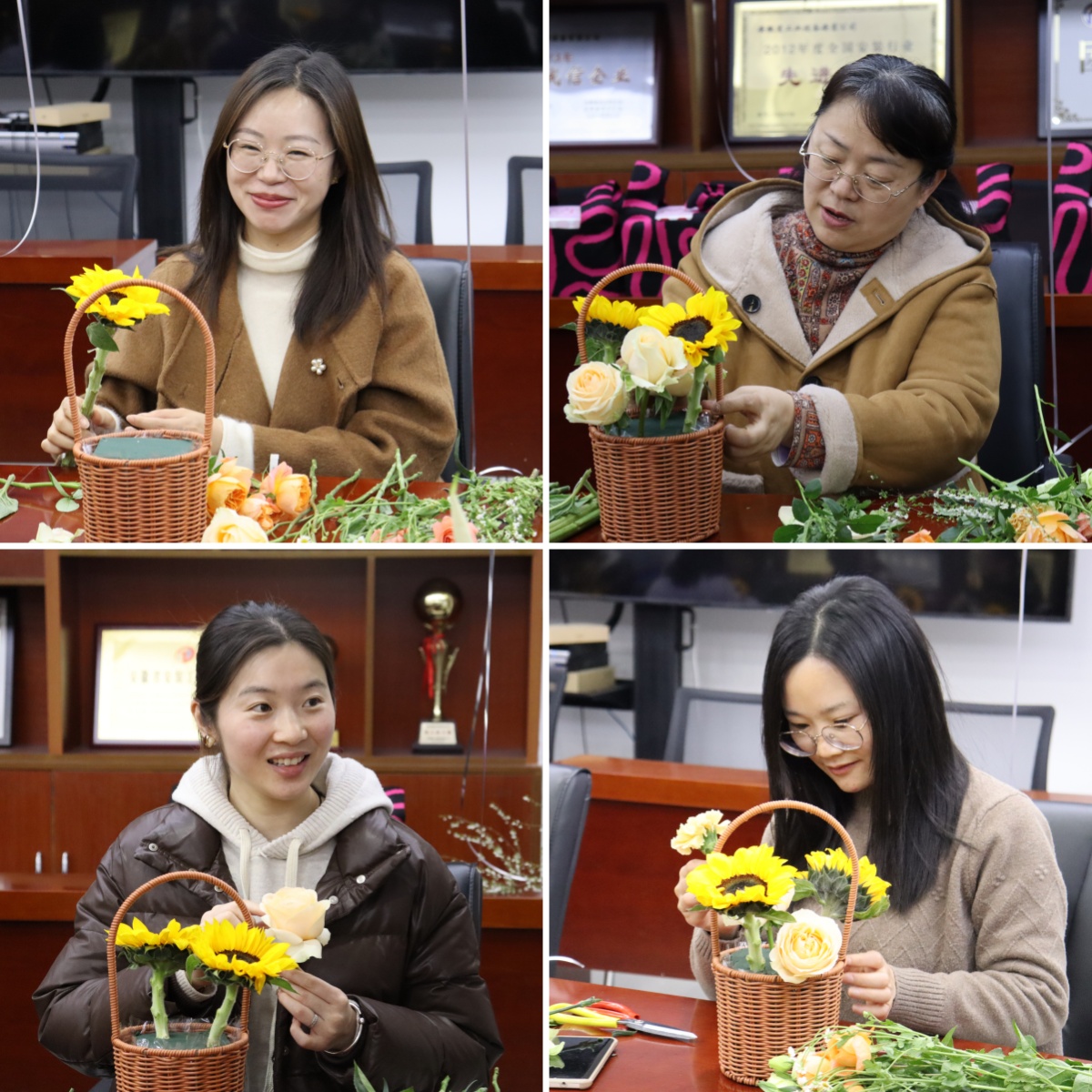活動現(xiàn)場花香四溢,充滿著春天的氣息,專業(yè)花藝師從花材特性、色彩美學到造型構思向大家進行了系統(tǒng)講解并進行了現(xiàn)場演示。女職工們興致盎然、躍躍欲試,充分發(fā)揮自己的想象力,以高漲的熱情投入到插花創(chuàng)作中,紛紛化身“春日設計師”,將玫瑰的熱烈、百合的芬芳、向日葵的陽光巧妙組合,在修剪與構思中展現(xiàn)女性的細膩匠心。大家一邊插花創(chuàng)作,一邊互相交流著自己的想法和創(chuàng)意,現(xiàn)場充滿了歡聲笑語、其樂融融。
