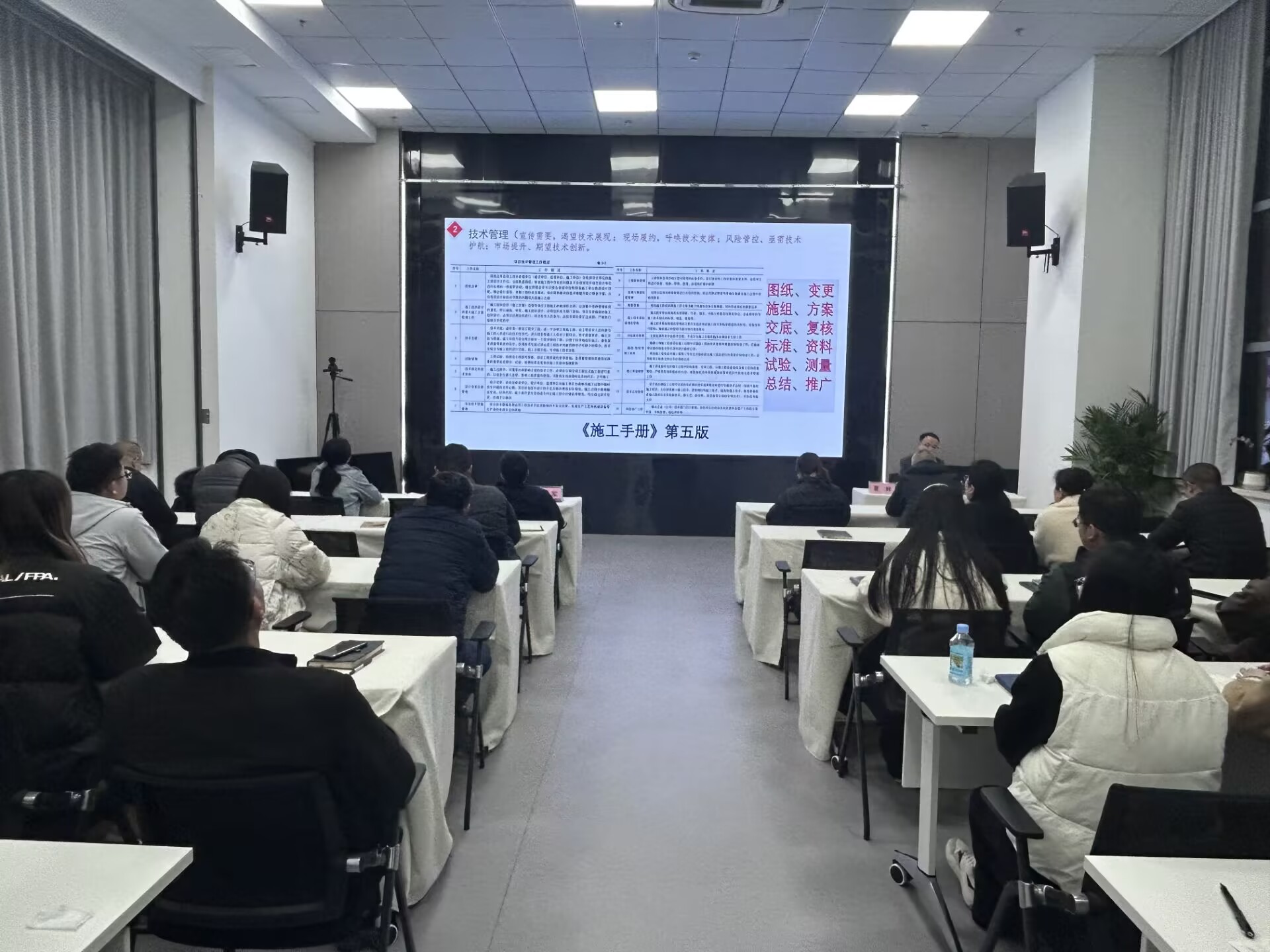 夏輝以中央發(fā)布的《一張思維導(dǎo)圖帶大家看2025年政府工作十大任務(wù)》的切入點(diǎn),強(qiáng)調(diào)了高質(zhì)量發(fā)展和創(chuàng)新驅(qū)動的重要性。隨后他從技術(shù)管理、機(jī)電工程體系、機(jī)電工程安裝工藝細(xì)部節(jié)點(diǎn)做法優(yōu)選、AI應(yīng)用等方面對機(jī)電工程基礎(chǔ)知識進(jìn)行了細(xì)致解讀,講解了技術(shù)在企業(yè)運(yùn)營中的核心作用。就《聚焦機(jī)電主責(zé)主業(yè) 走“專精特強(qiáng)”之路行動方案》(第一版)與參培人員進(jìn)行深入交流。