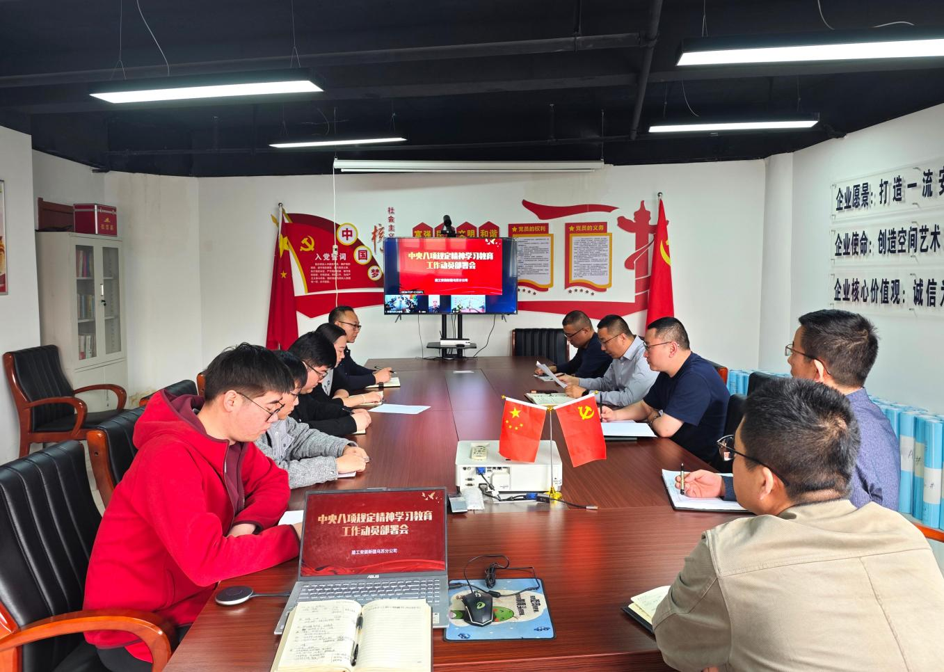 4月14日,建工新疆烏蘇分公司召開深入貫徹中央八項規(guī)定精神學(xué)習(xí)教育工作動員部署會,會議由黨支部書記、經(jīng)理李磊主持,采用線下+線上視頻連線的方式召開,分公司領(lǐng)導(dǎo)班子、支部黨員、機關(guān)員工參加會議。