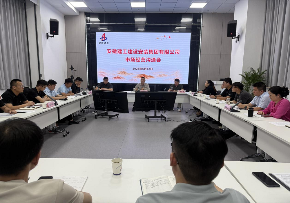 6月12日下午,建工安裝召開市場經(jīng)營溝通會,公司黨委委員、副總經(jīng)理劉曉剛、費廣清出席會議,市場開發(fā)和投資部經(jīng)理許杰主持會議。